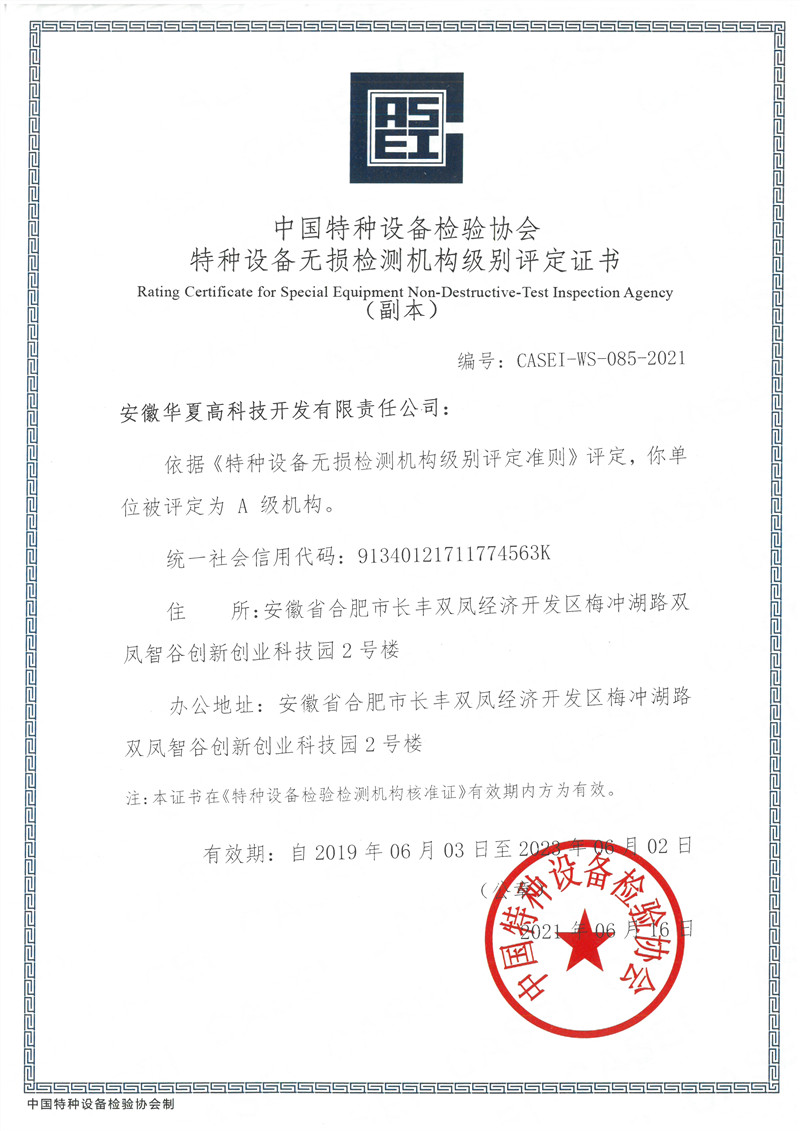 公司于1999年在合肥正式成立,注冊資金3000萬。是安徽省內規模較大、具備獨立法人資格,專業從事特種設備檢測、建筑人防檢測、技術咨詢以及科技研發為一體的第三方綜合性檢測技術機構,2002年首批獲得了由國家質檢總局頒發的《特種設備檢驗檢測機構核準證》編號007,目前獲準RT/UT/MT/PT/AE/...